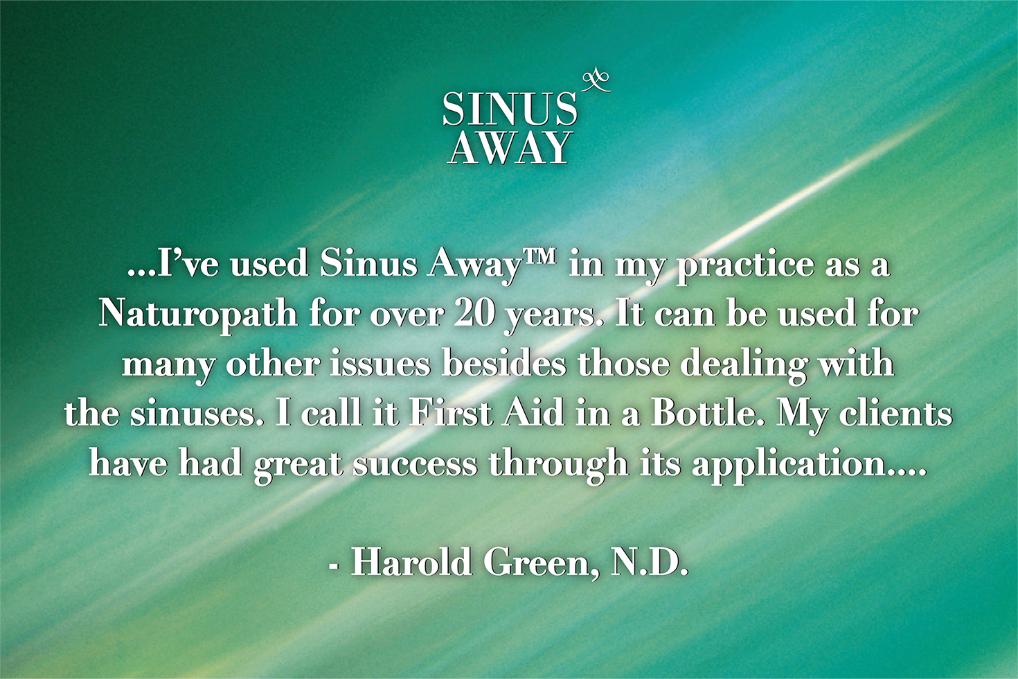 The essential oils in Sinus Away™ have anti-viral, anti-fungal, anti-microbial, anti-bacterial and antiseptic properties. Additionally, olive oil has been widely known to function as an anti-histamine at the cellular level, and is often used in the treatment of inflammatory problems, including allergy-related inflammation.
